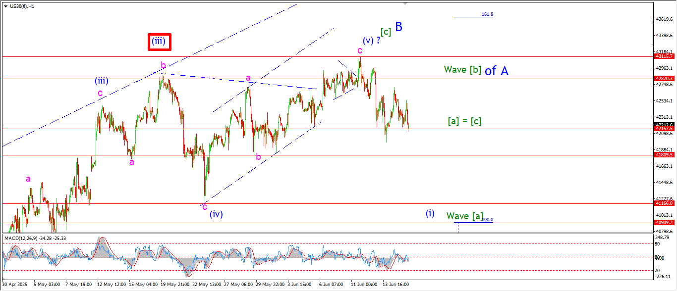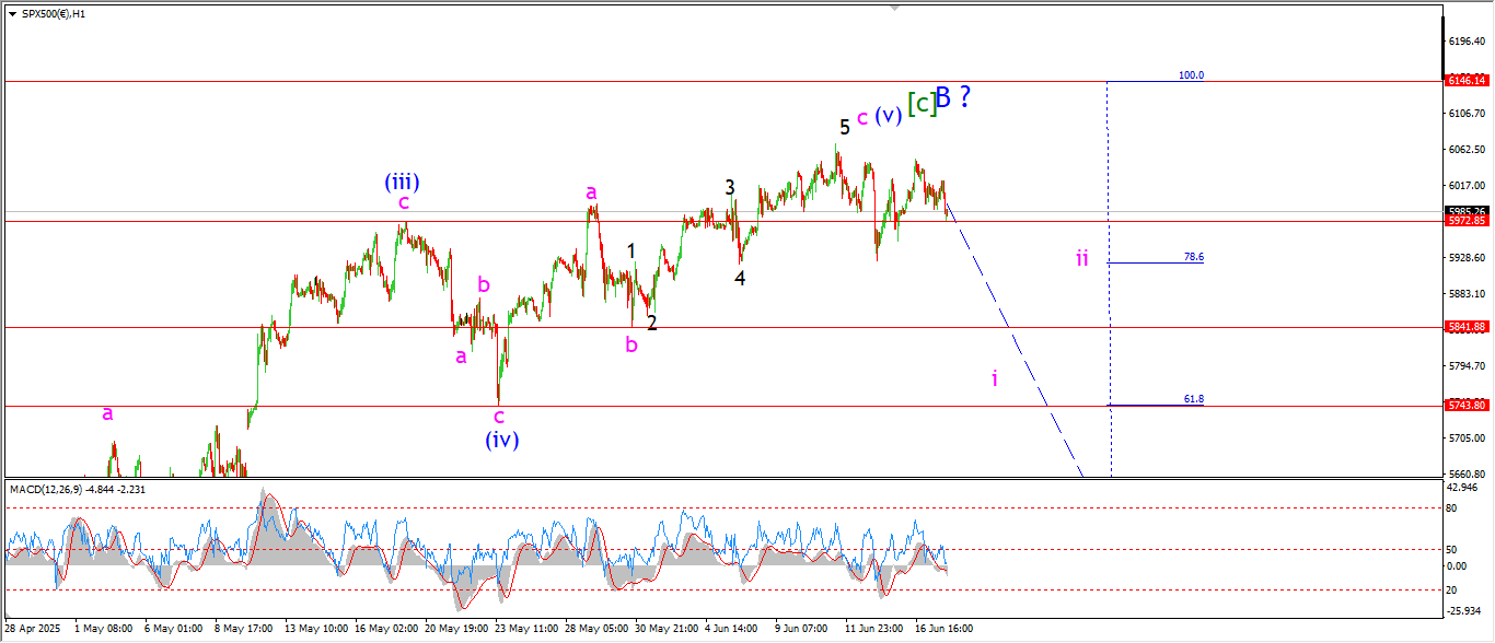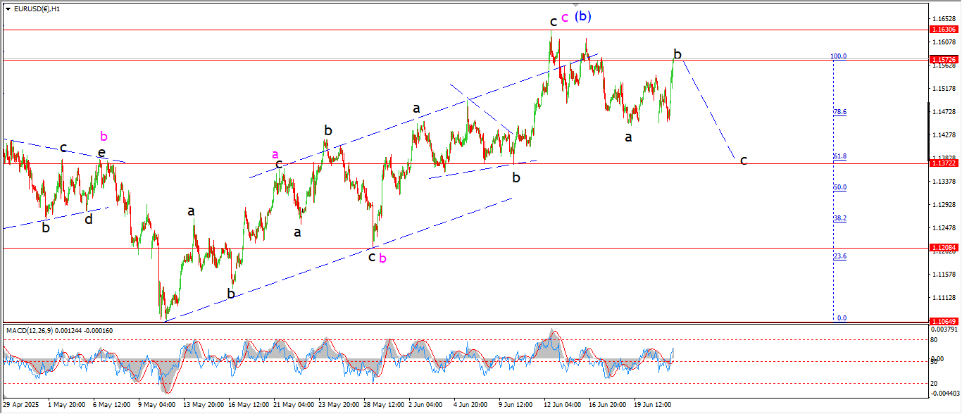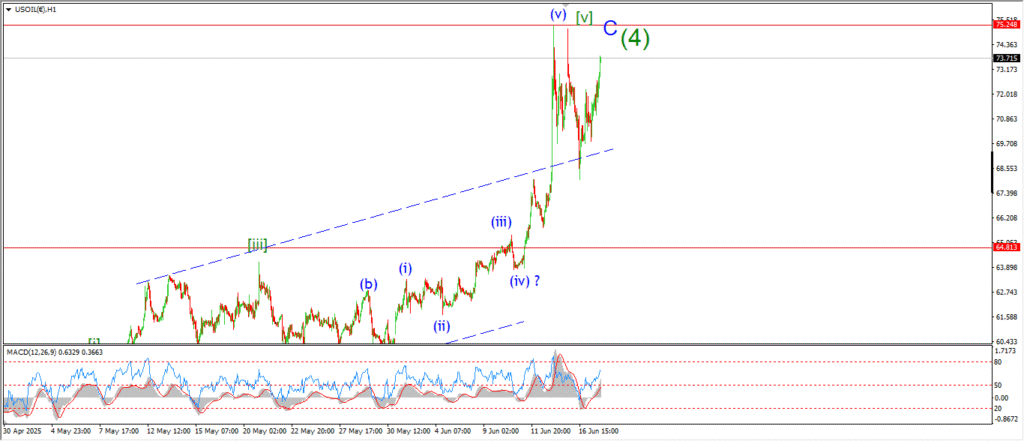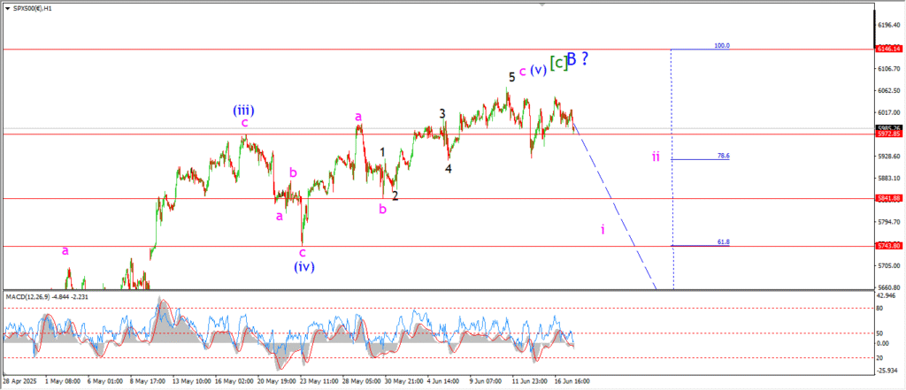The action today looks like there is an impulsive move lower coming into wave ‘c’ this week.