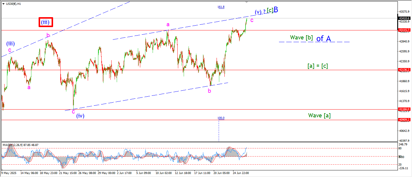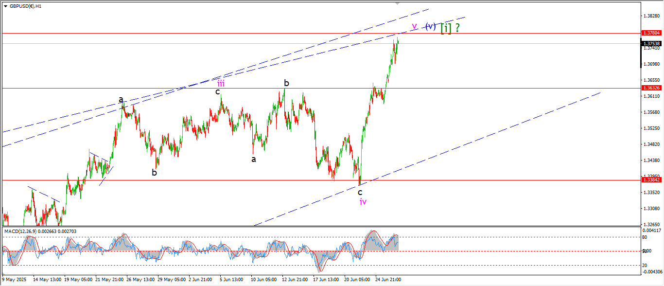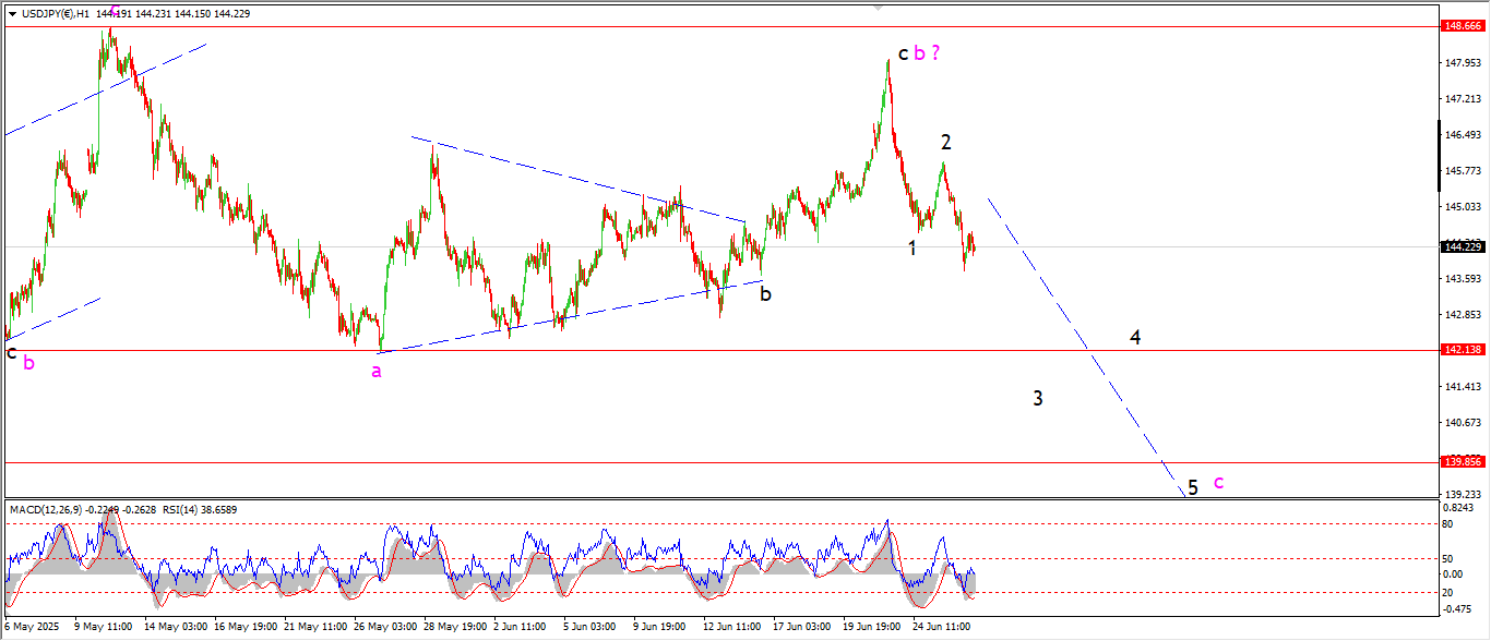 the action is now moving opposite to USDJPY with a new high in wave [i] and a new low for USDJPY on the cards.