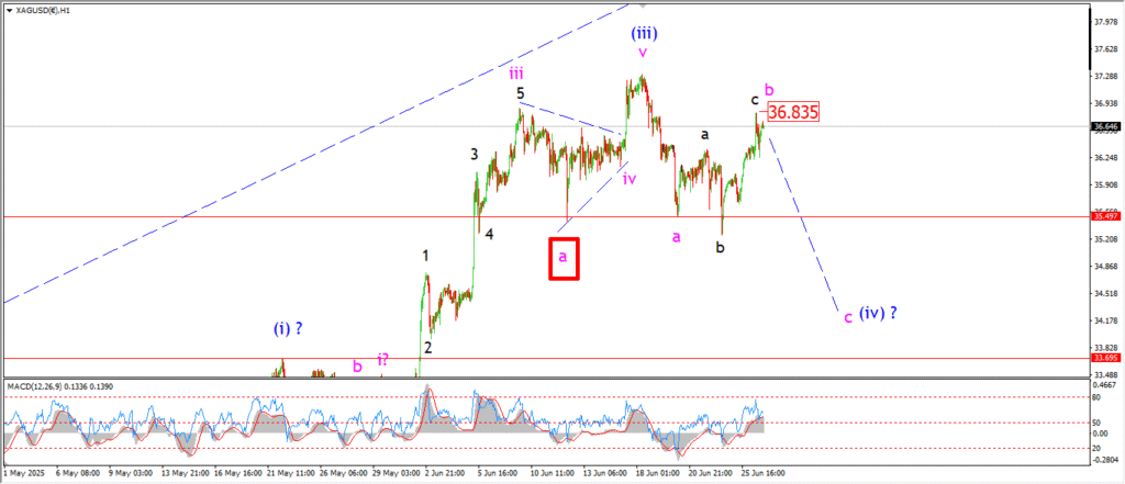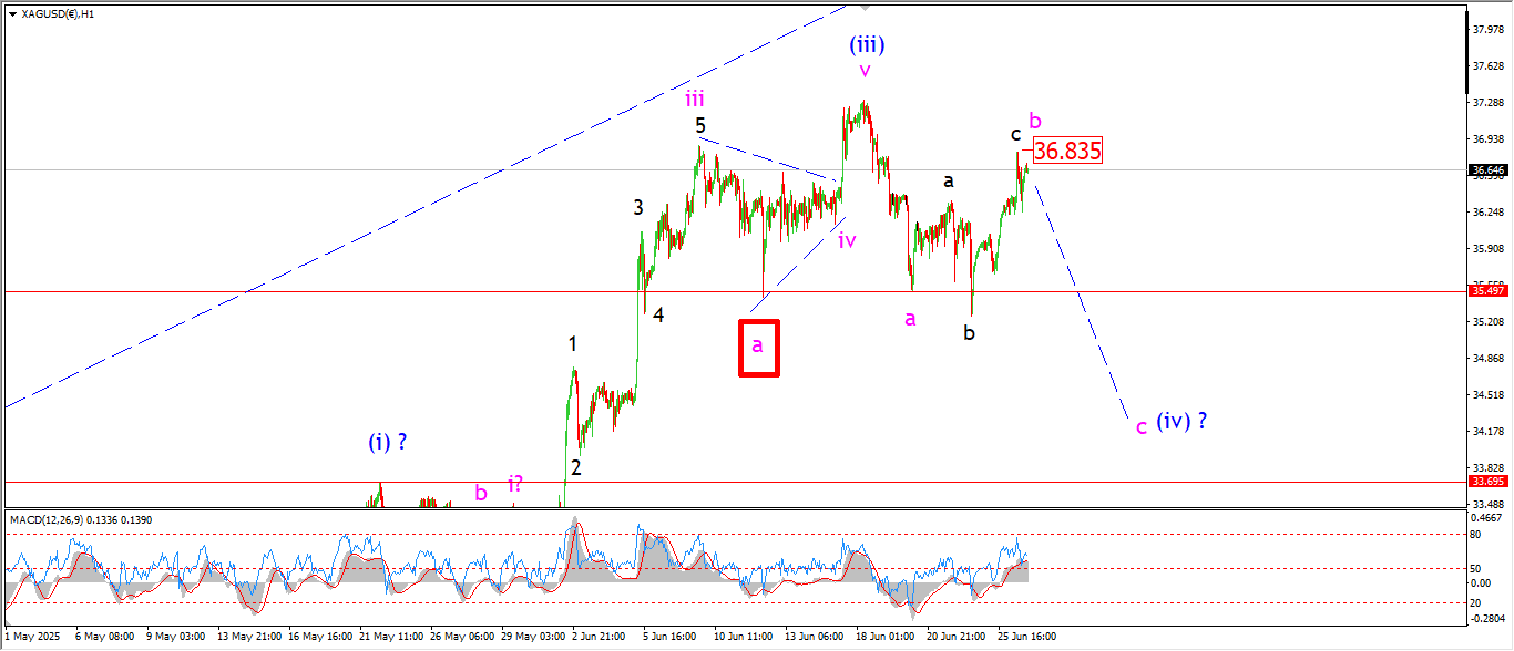 Watch for wave ‘c’ to fall back below 35.00 again as wave (iv) takes over again.