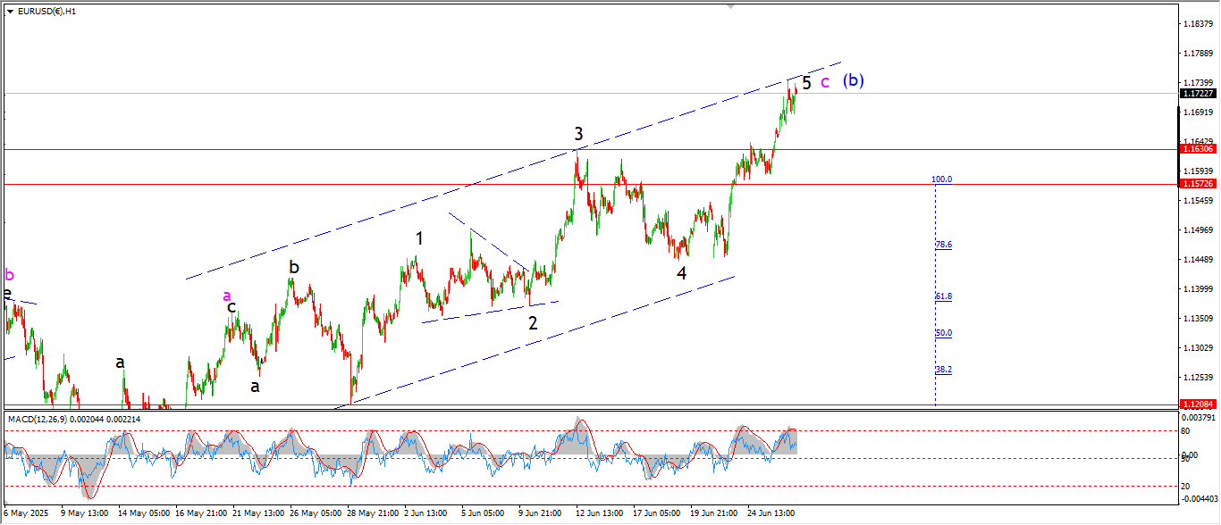 EURUSD has managed to hit the upper trend line again in wave ‘c’ of (b).
