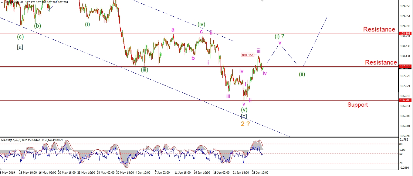 A rally above the wave ‘iii’ high at 108.16 will confirm wave ‘v’.