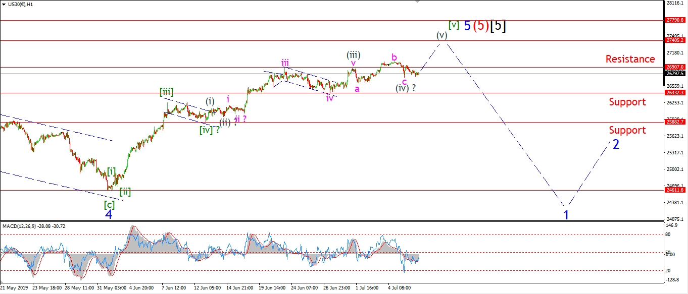 A break of that low at 26725 will signal wave (iv) is extending a little more.