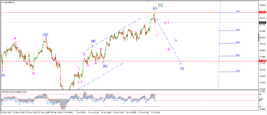 A break below the 80.00 handle again will give a boost to this idea for wave (i) down.