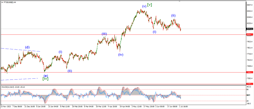 Wave ‘iv’ has taken most of the last week to unfold and that correction took the form of a triple combination I think.