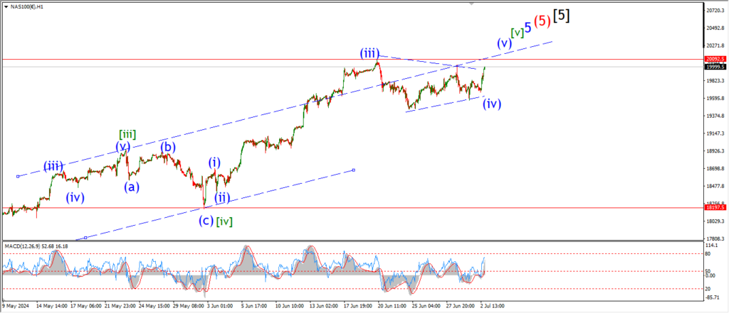 The action remains in a channel to the upside and there is a chance that wave ‘2’ has topped out at the high again.