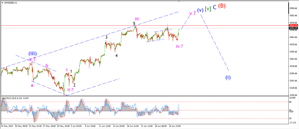 It looks like the S&P is reaching for another new high in wave (v) again after a rebound off the early lows.