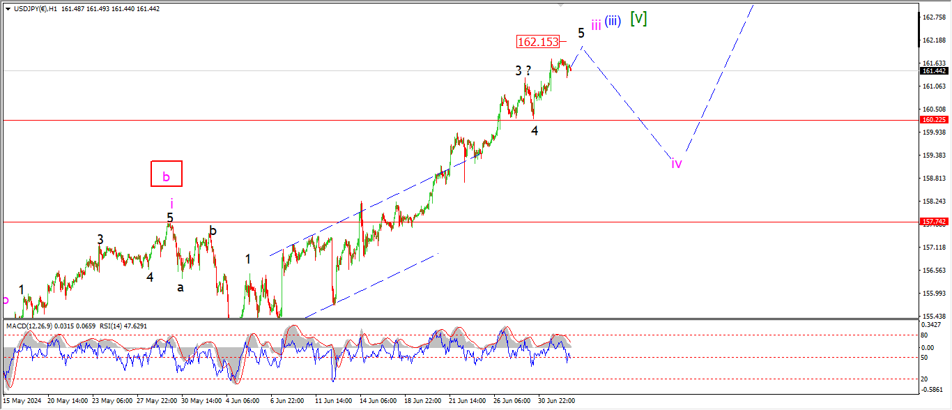 I am looking for one more pop above 162.00 to complete wave ‘5’ of ‘iii’ of (iii) tomorrow.