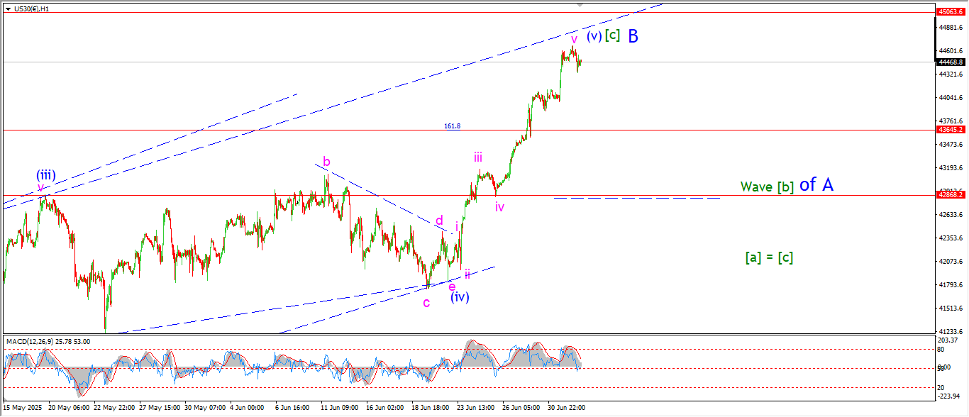 This action is corrective for the moment so it seems that wave ‘c’ will stretch a little further before creating a top in wave ‘c’ of (b).