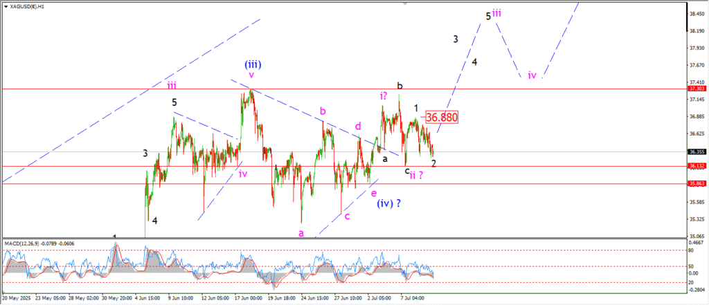 WAtch for a turn higher in wave ‘3’ and a break of 36.88 again to signal wave ‘3’ is underway.