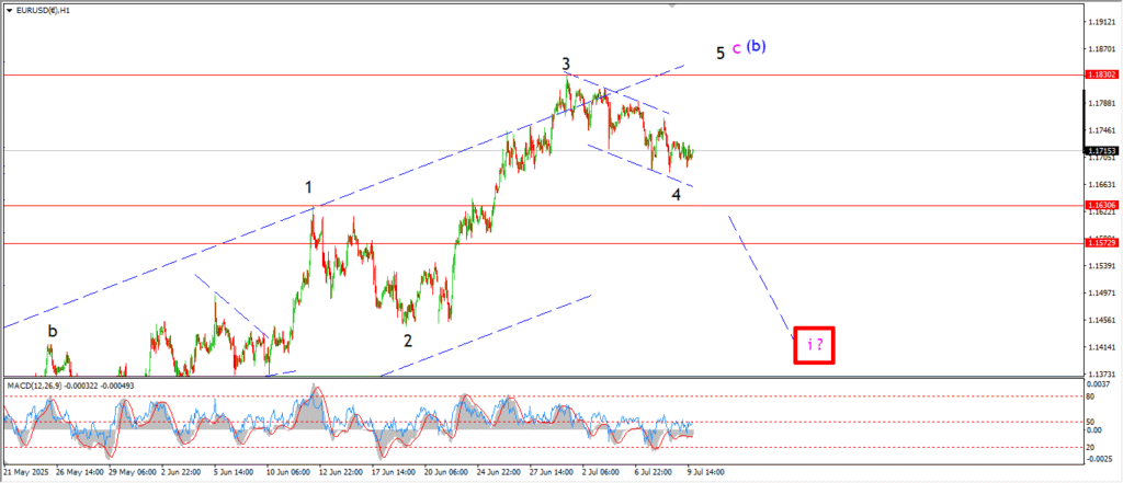 Watch for wave ‘4’ to hold above the support at 1.1630 and then turn higher into wave ‘5’ as shown.