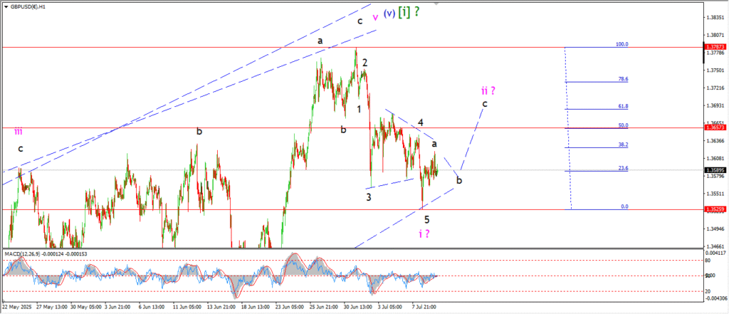 Cable is moving higher in a corrective manner today and this is in line with a possible correction in wave ‘ii’.