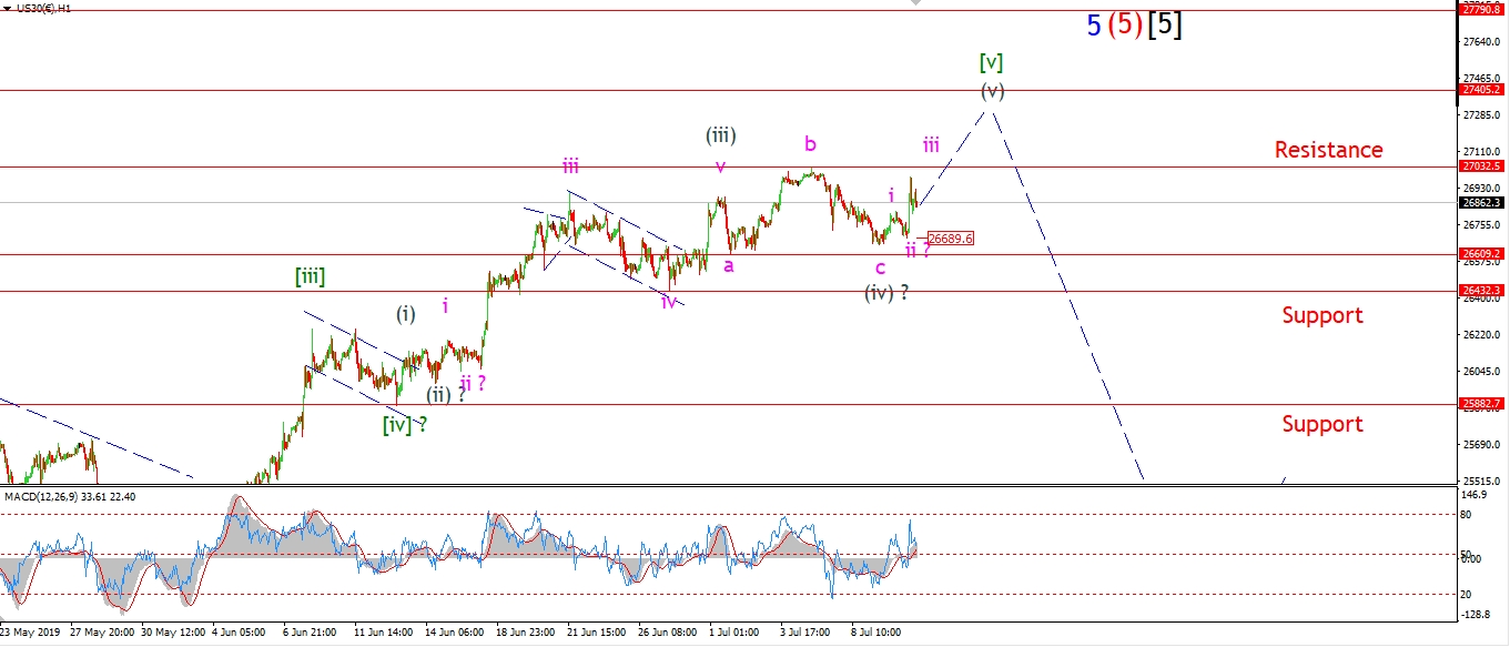 For now we are clear to push higher in wave (v) as long as 26690 holds.