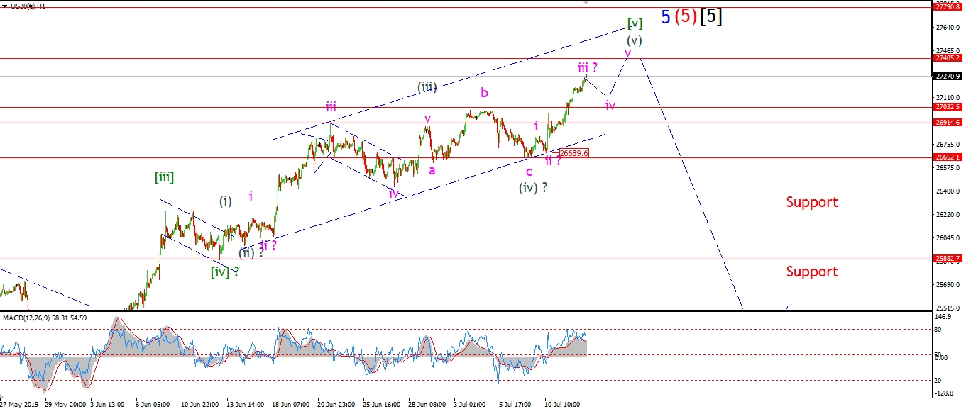 Watch for wave ‘iv’ of (v) to correct sideways and hold above 27000.
