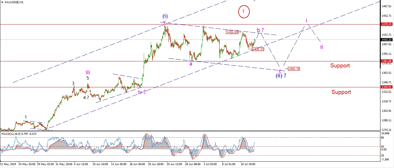 The triangle idea for wave ‘b’ in Gold is holding this evening.