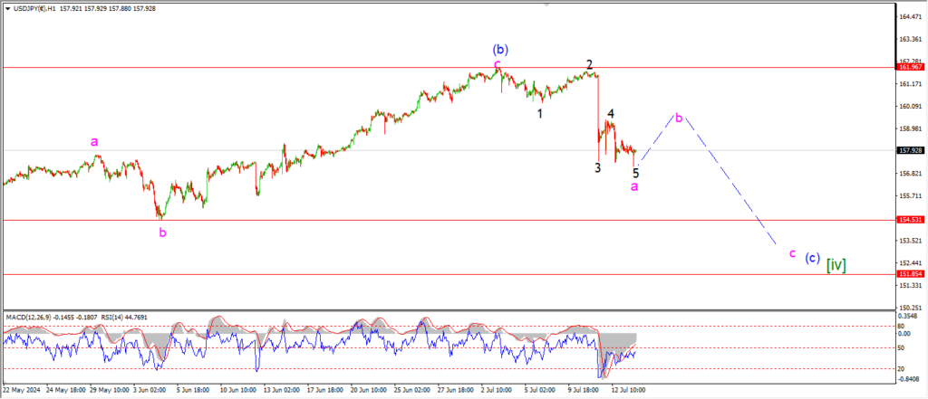 this new wave count will allow for a drop into the previous low at 151.00 again to complete wave (c) of [iv].