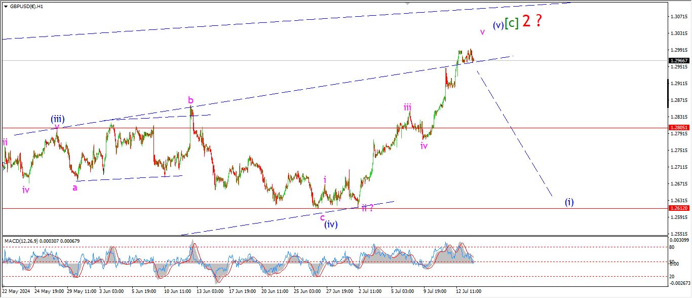 Watch for wave (v) to finally show signs of completion with the price dropping back below 1.2800 again.