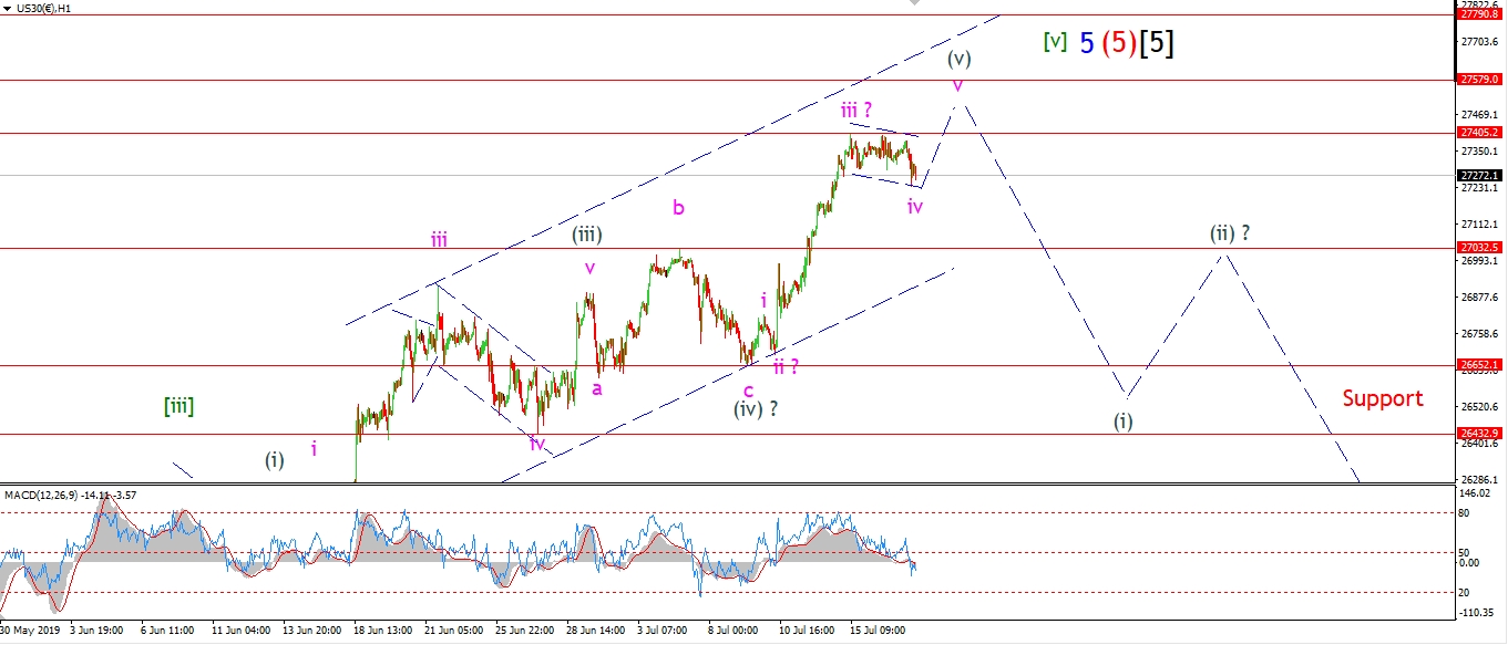 Watch for wave ‘iv’ to complete above 27000 and then wave ‘v’ should break above 27500.