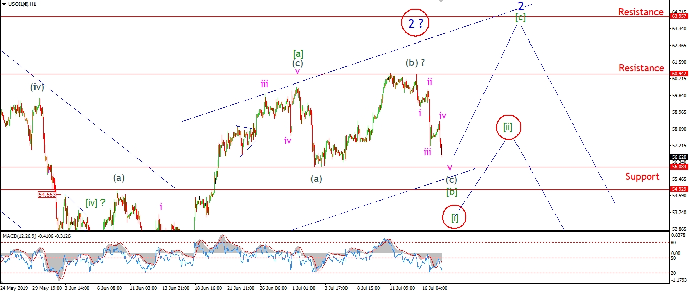 The target for wave (c) remains at 56.00 with a break of the wave (a) low.