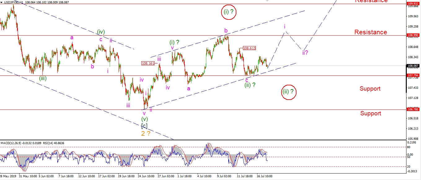 USDJPY has not delivered the impulsive action that is expected to begin wave (iii) up.