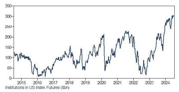 Asset Managers are now long $300 Billion worth of U.S. Equity Index Futures, the largest long position in history, according to Goldman Sachs