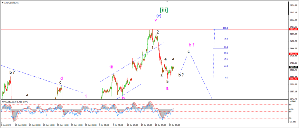 I have marked the 50% retracement level at 2430 as a possible target for wave ‘b’.
