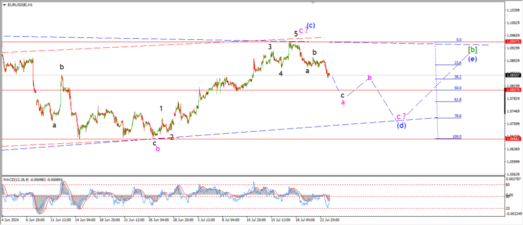 Watch for wave ‘a’ to complete with a drop into 1.08 and then we can expect a sideways move in wave ‘b’ to begin.