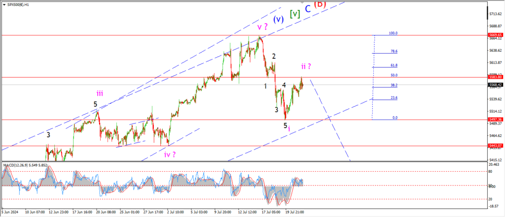 A break below 5500 again will favor the idea that wave ‘iii’ pink has begun.