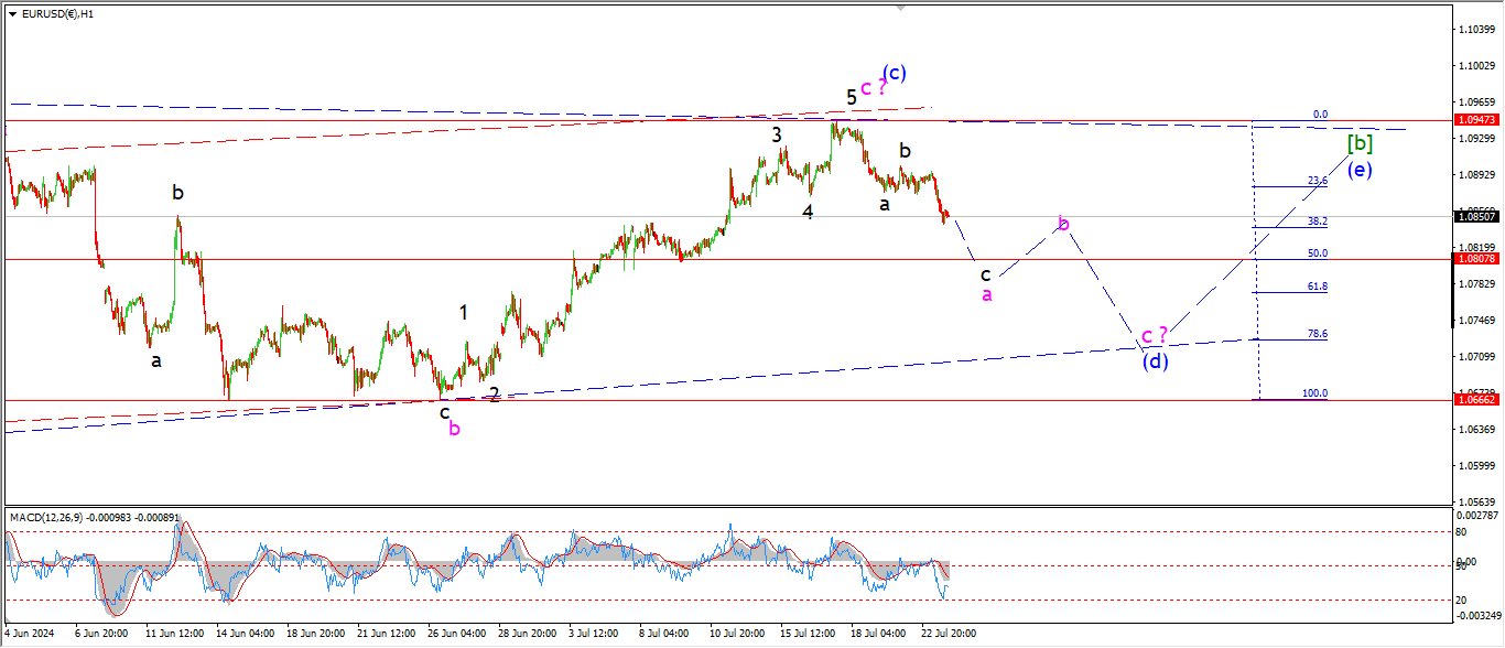Watch for wave ‘a’ to complete with a drop into 1.08 and then we can expect a sideways move in wave ‘b’ to begin.
