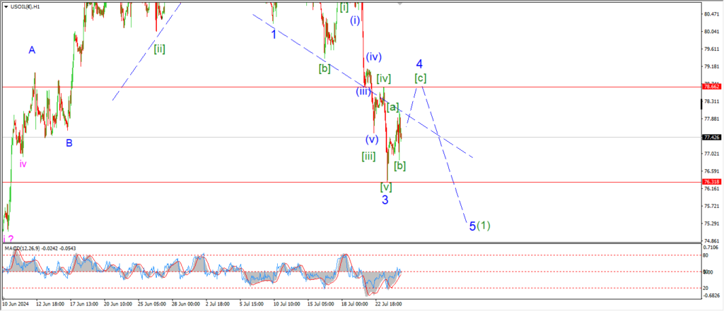 Crude has continued the bounce off the wave ‘3’ low again today.