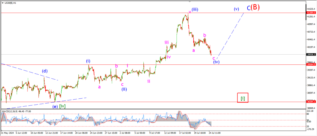 Another move to the downside today is shown as wave ‘c’ of (iv).