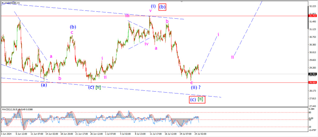 A small relief today as silver is holding above the wave [ii] lows at 28.56 again.