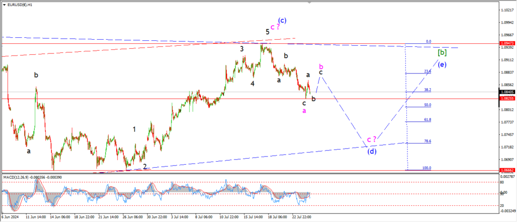 EURUSD has completed three waves down at todays lows at 1.0825.