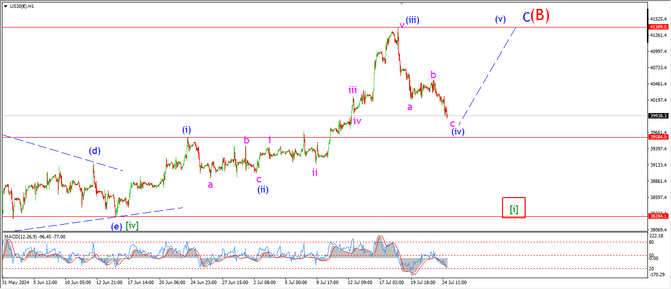 Another move to the downside today is shown as wave ‘c’ of (iv).
