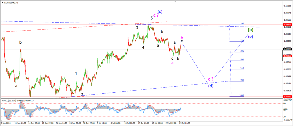 But if the price breaks down below the wave ‘a’ low at 1.0825 again that will signal wave ‘c’ is underway.