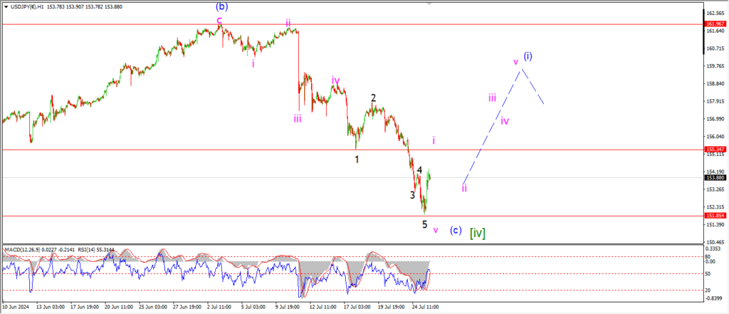 Watch for wave ‘i’ of (i) to break above 155.34 and then we should see a higher low build off that level.