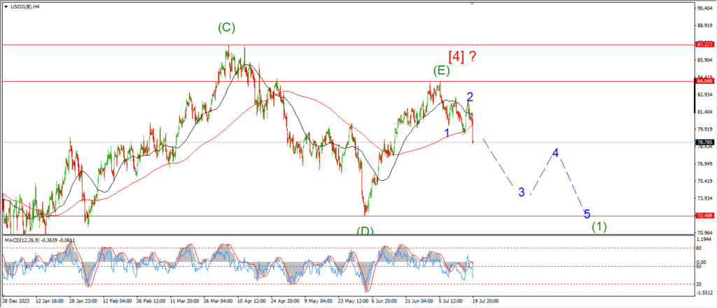 the target level for wave ‘4’ was at 78.60 and the price has broken above 78.10 so far.