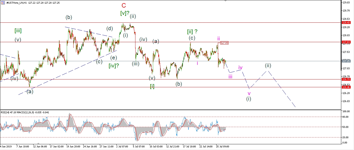And wave ‘ii’ should complete a three wave form to the upside as shown by Monday evening.