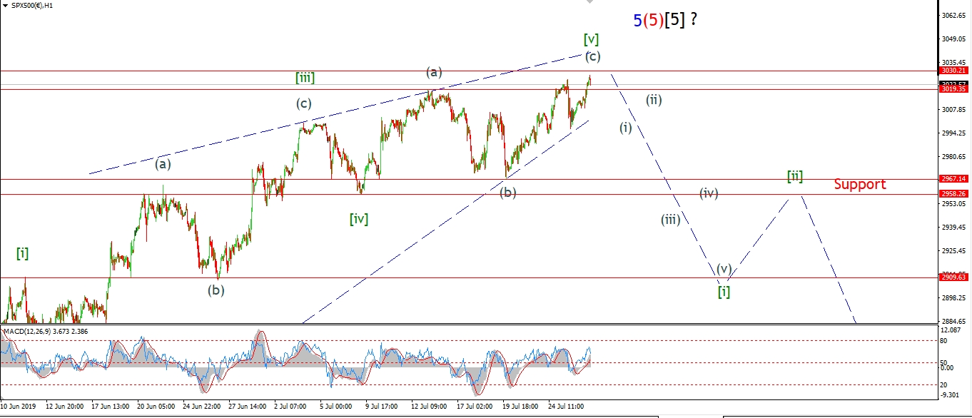 The fact that we got a slight new low this evening makes wave [ii] an expanded flat correction.