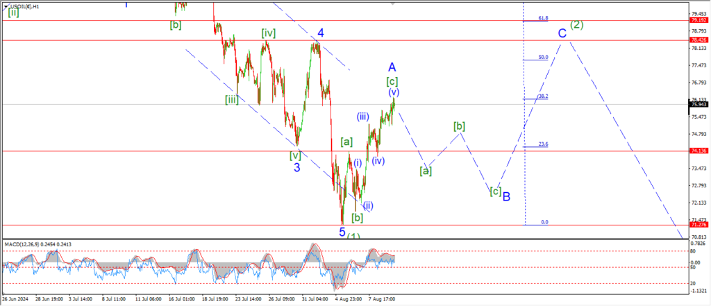 and wave [c] of ‘A’ shows a completed five wave rally this week.