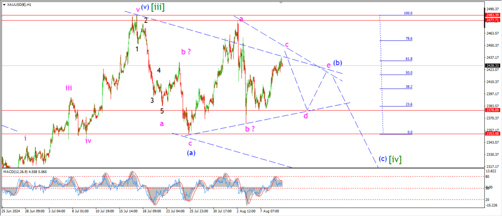 and the recent low at 2378 as the initial target for wave ‘d’ to complete.