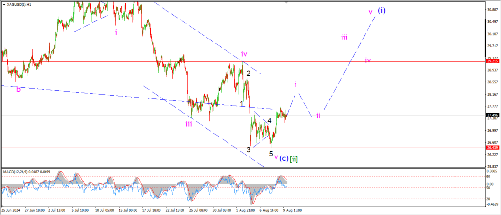 The action today looks like a small fourth wave correction to be followed by a fifth wave rally to close out wave ‘i’.