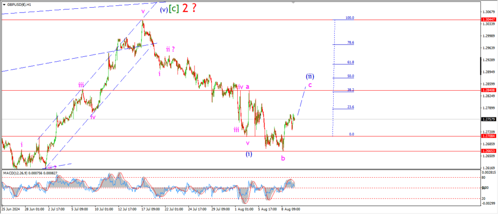 Watch for wave (ii) to complete with a break of the wave ‘a’ high at 1.2841.