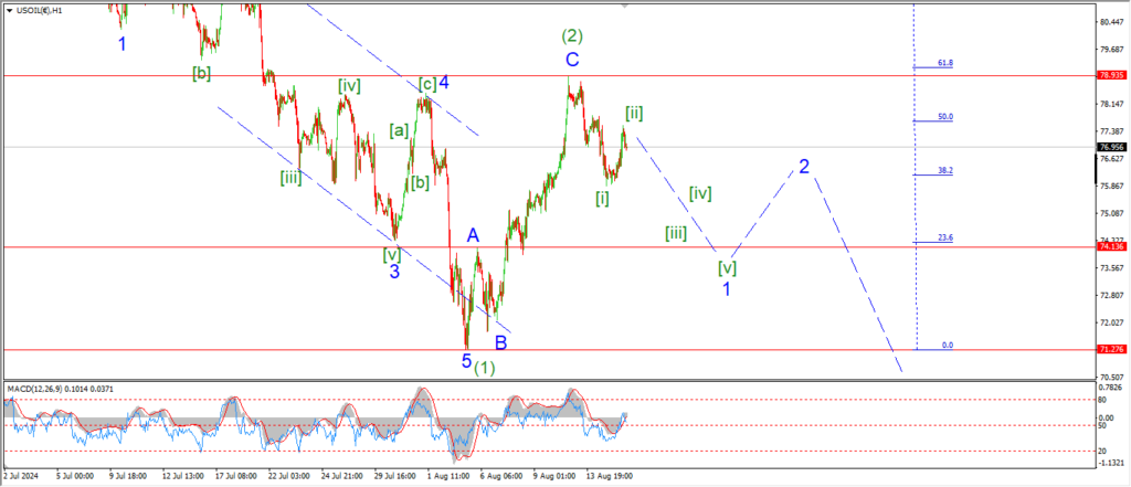 A rebound today in crude has created a possible lower high in wave [ii] of ‘1’.