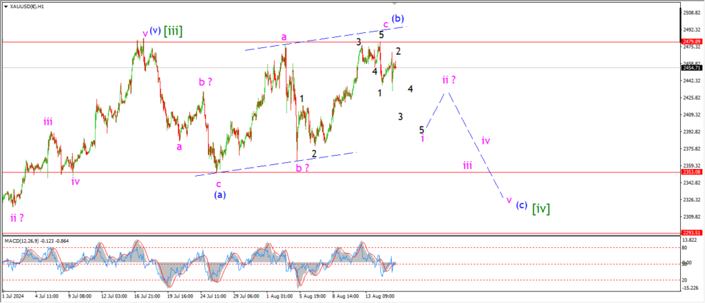 Watch for wave ‘i’ to fall in five waves towards 2400 to signal wave (c) is underway.