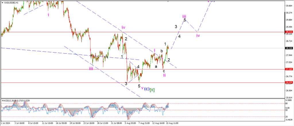 I want to see wave ‘ii’ push out above the previous wave ‘iv’ high at 29.21 to confirm the bullish idea.