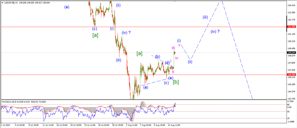Watch for wave ‘v’ to complete wave (i) with another small push above 149.50.