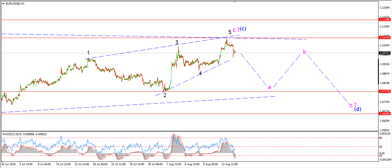 Wave ‘a’ of (d) should fall back into the recent support at 1.0777 again in three waves.