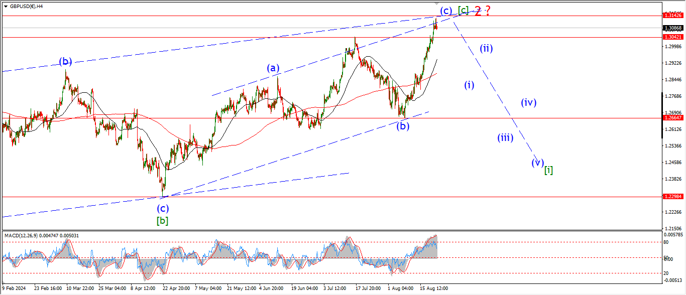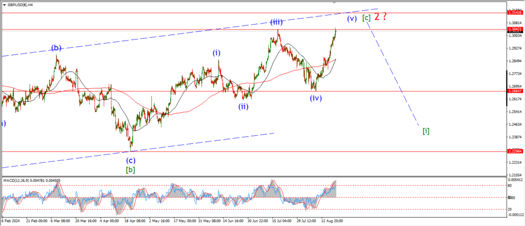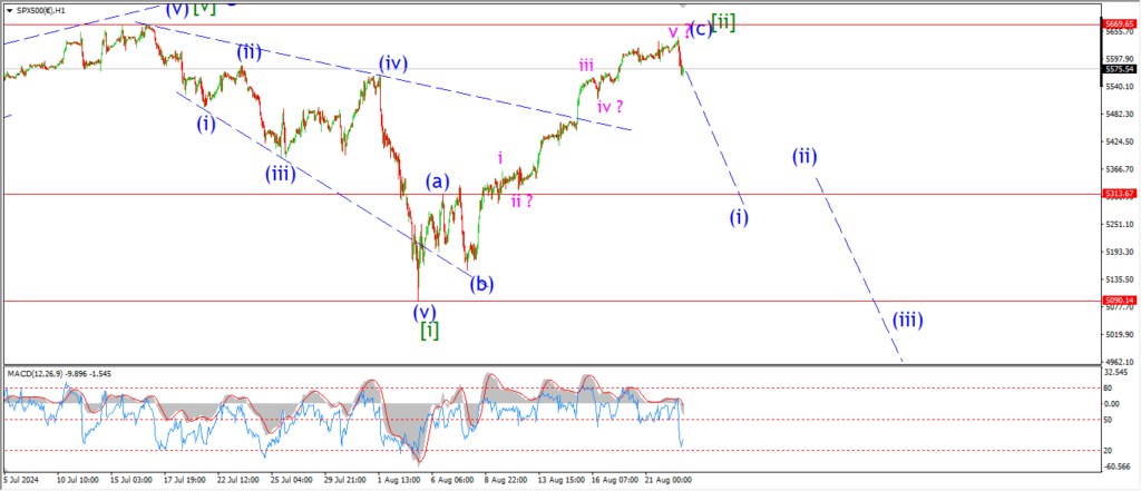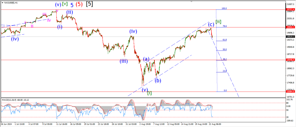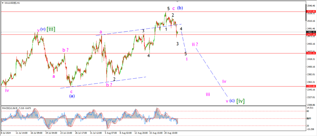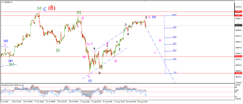 The price took a step lower off the highs today and I am looking at the possibility of a five wave pattern building into wave ‘i’ of (c).