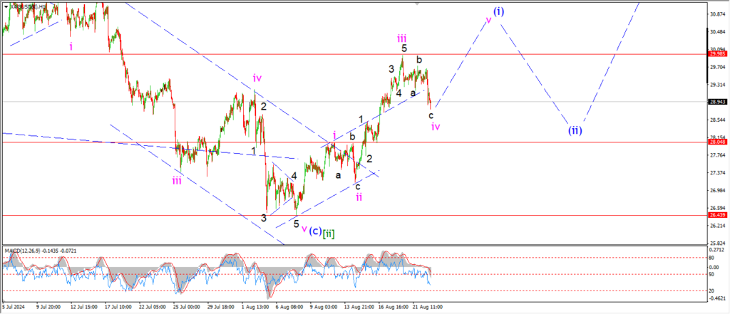 Wave ‘iv’ must hold above 28.04 at the wave ‘i’ high.