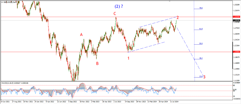 Cable has come very close to invalidating the wave ‘2’ count today but the price backed off this evening.